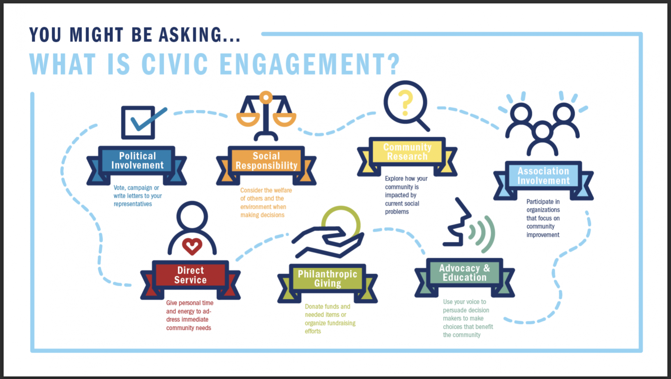 A civic engagement project is a project in which a student or group of students defines problems in their own communities, investigates root causes and possible solutions, develops and implements plans to address those problems, and reflects on their actions to help them develop identities as citizens with rights and responsibilities.